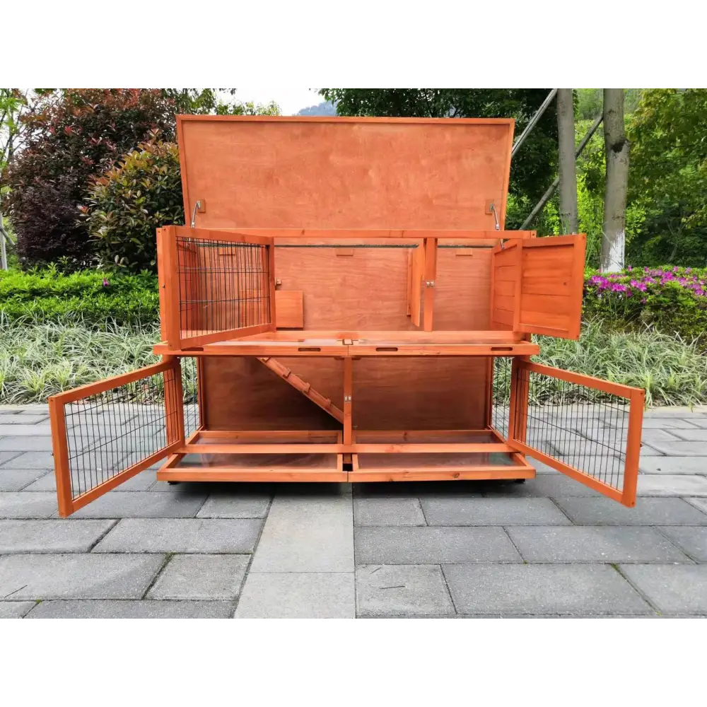 The hutch's versatile design makes it suitable for multiple small animals, including rabbits, guinea pigs, ferrets, and even cats. Its generous dimensions provide ample room for your pets to move, play, and rest comfortably. The four large access doors allow easy interaction with your pets and facilitate thorough cleaning of the enclosure.