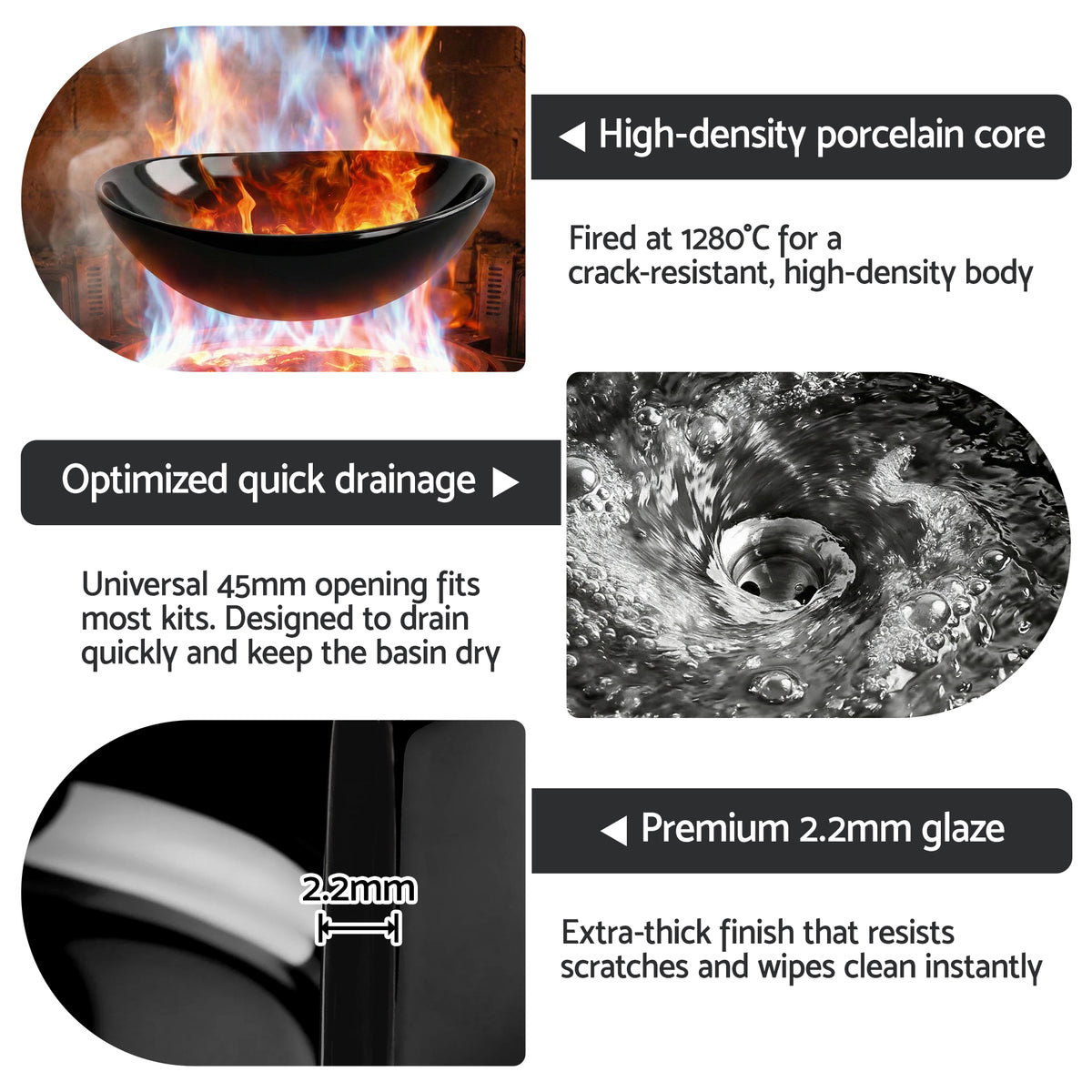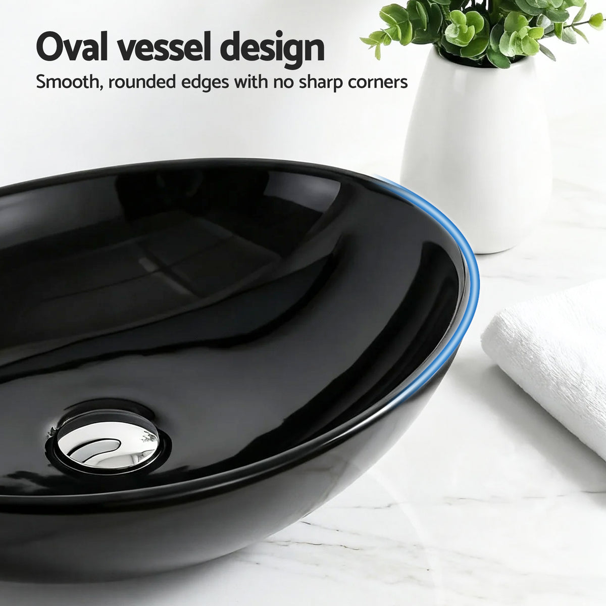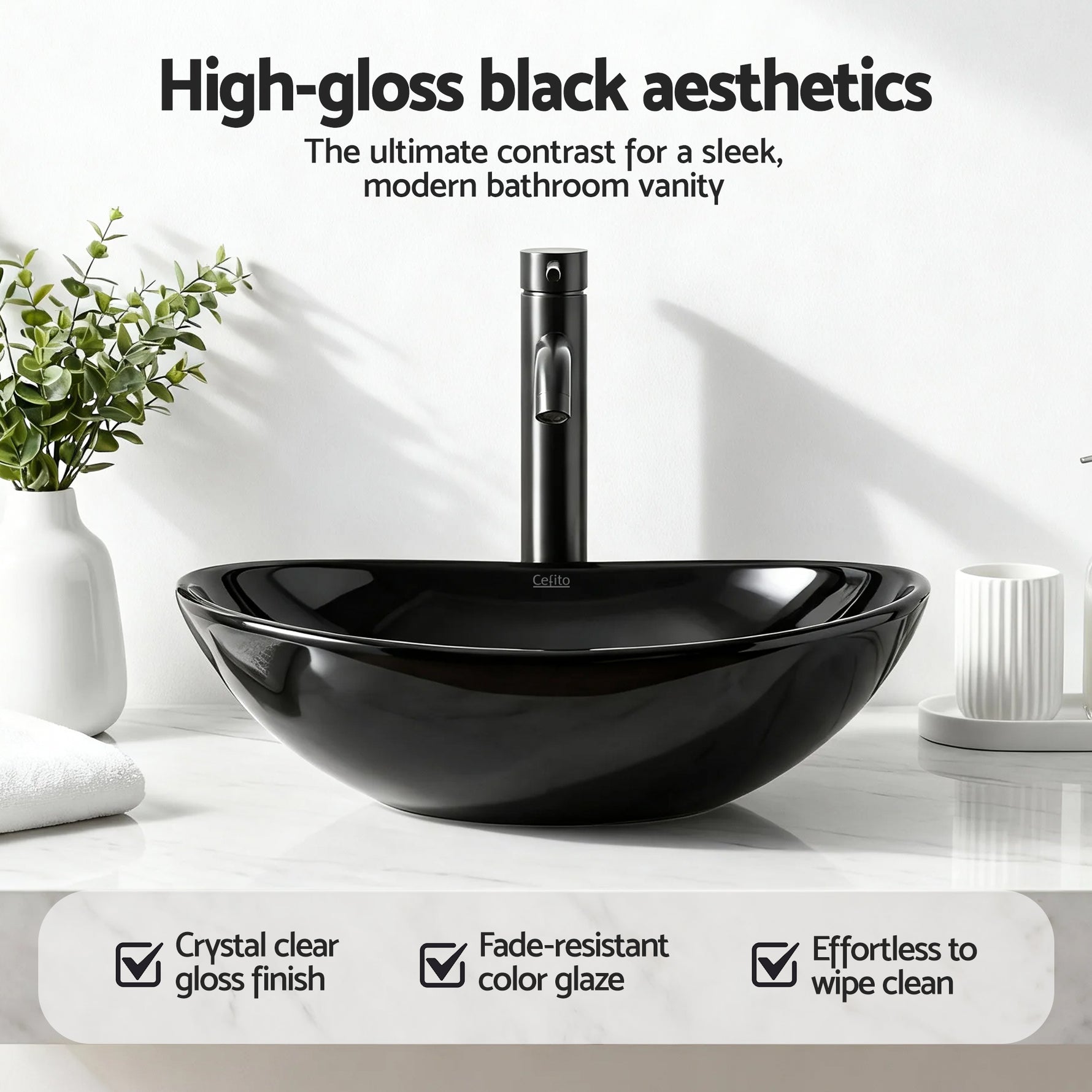 Add a touch of modern luxury to your bathroom with the Cefito Ceramic Basin. Featuring a stunning high-gloss black finish and an elegant oval vessel design, this 41cm countertop sink is a true statement piece. Built from durable, scratch-resistant crystalline ceramic, it offers lasting style and easy installation.