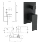Matt Black Square Stainless Steel Shower Mixer 2 Way Bath Set Diverter Watermark