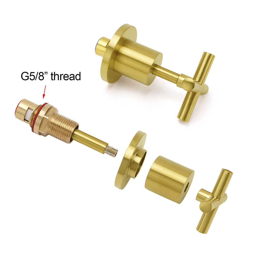 Brushed Gold Shower 1/4 Turn Twin Taps Basin Bath Spout Hot Cold Water Mixer Set