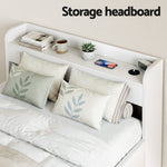It's easy to sleep well on the Artiss Aura Bed Frame. Made from thick 15mm and 18mm particleboard with 12mm plywood slats and a white paper finish, the bed frame is designed for long-lasting use and longer-lasting sleep. The thick plywood slats and centre beams provide total support, and noise-free use, and improve the life of your mattress. It features a multifunctional design that allows you to use the bed for storage and to charge your phone overnight. Two drawers with smooth castor wheels can be installed on the left or the right for convenient storage. The headboard has smooth edges and plenty of room for your bedroom essentials. It also features two USB charging ports connected to a 200cm cable for convenience. While you power down for the night, you can power up with the Aura Bed Frame from Artiss.