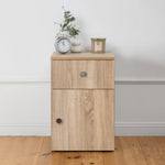 PORTO BEDSIDE TABLE - NATURAL OAK - SLIM - ROUND BLACK
