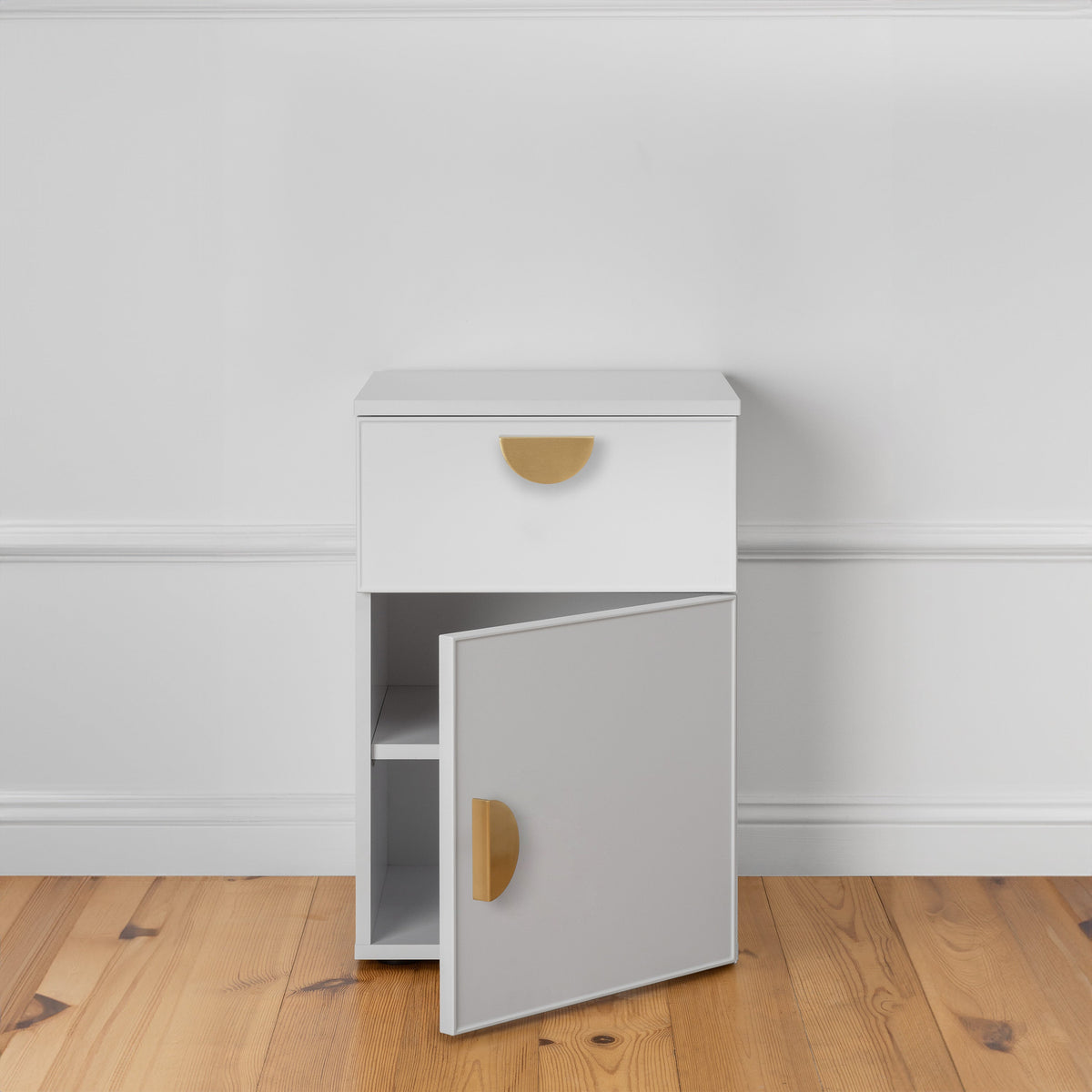 PORTO BEDSIDE TABLE - WHITE - SLIM - HALF MOON BRASS