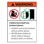 - NEVERallow children to stand, climb or hang on drawers, doors, or shelves.