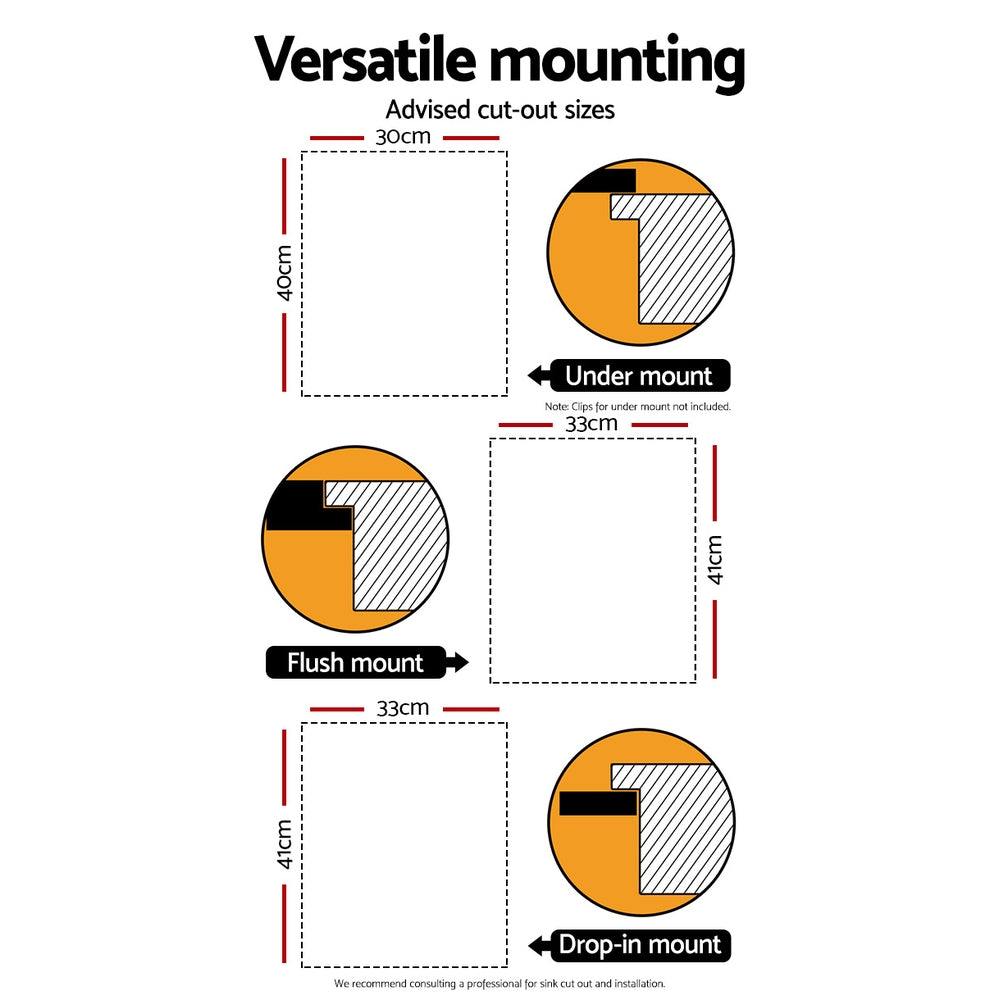 Suitable for drop-in, flush mount and under mount