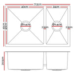 Cefito Kitchen Sink 71X45CM Stainless Steel Basin Double Bowl Silver
