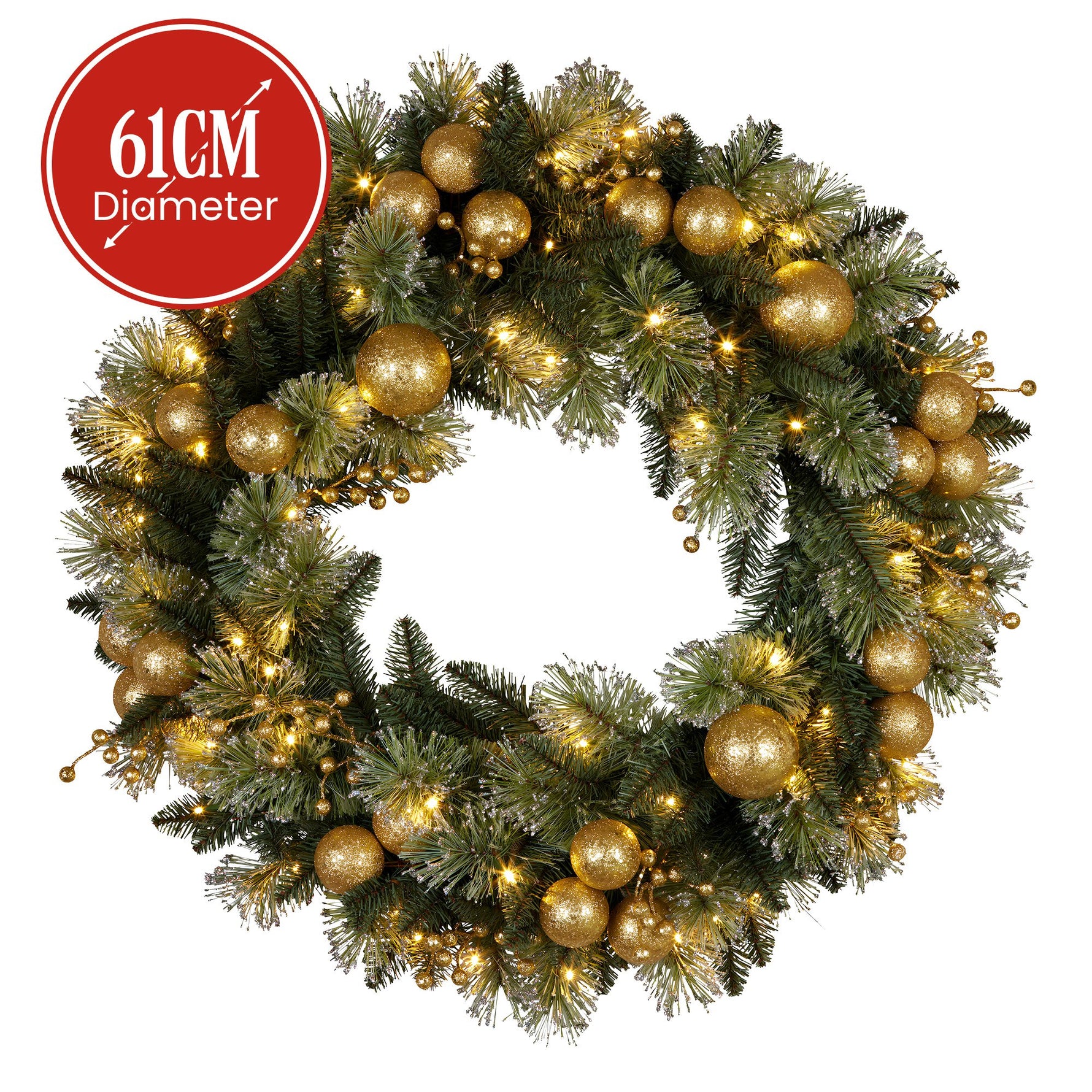 Christabelle 61cm Christmas Wreath Battery-operated Warm White Light Gold Bauble