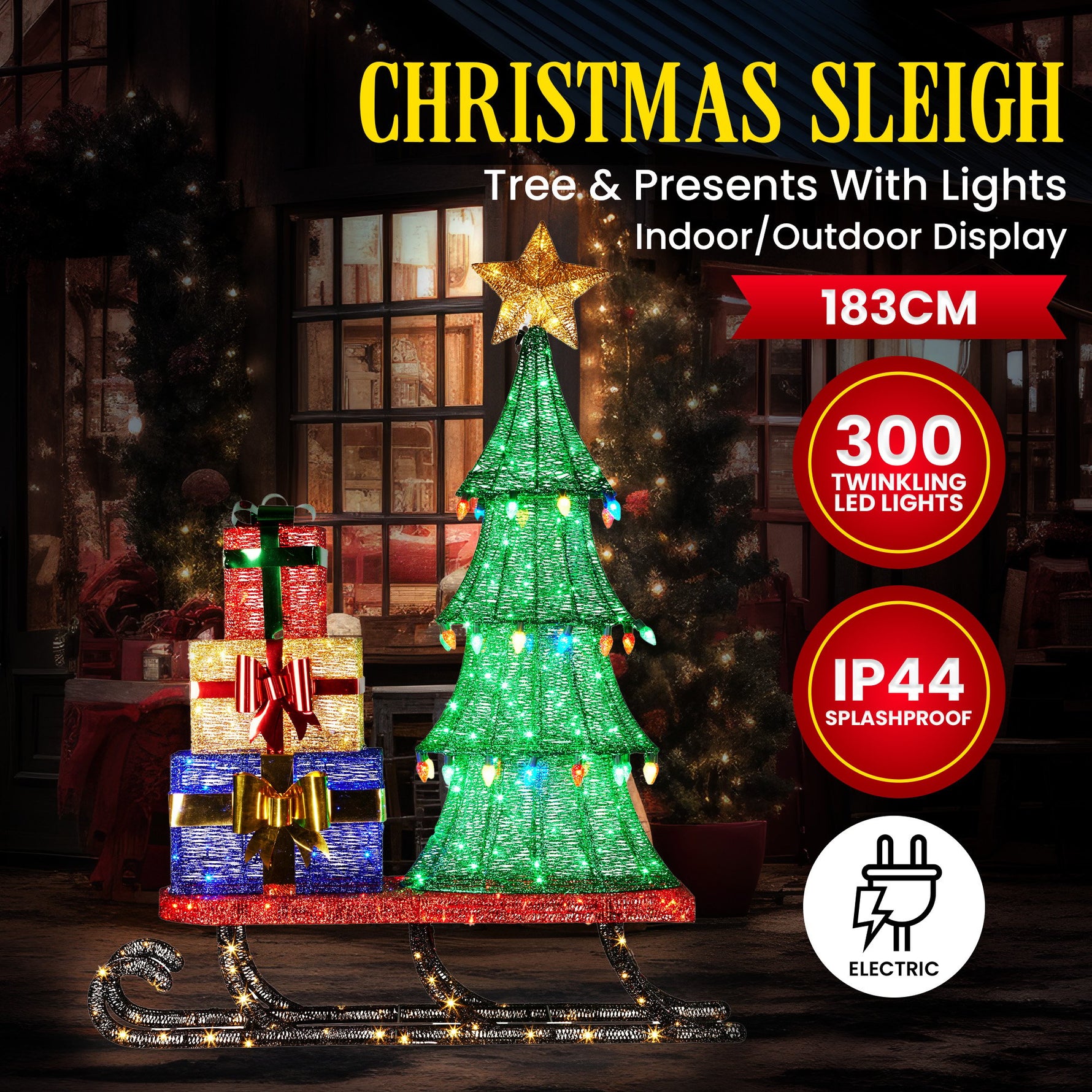 Christabelle Christmas Display Sled 183cm With Tree And Presents Led Lights & C9 Bulbs