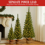 Christabelle Set of 3 Pre-Lit Christmas Trees Green Pine w/LED Lights, Hessian Base & Individual Plugs Varying Heights