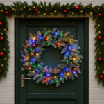 National Tree Company 76cm Pre Lit Snowy Stamford Spruce Battery Operated Christmas Wreath w/LED Lights & Timer