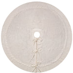 White Luxury Knit Christmas Tree Skirt with Cable-Knit Border - Rustic Holiday Decor(122cm)