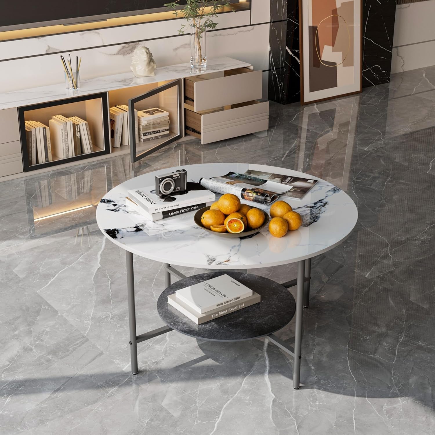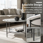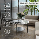- 2 tier Coffee Table - Circle coffee table in a matte black framework and white sintered stones table top,designed rich texture marble texture tabletop,Marble tabletop texture has strong visual impact,with simple and slightly luxurious,Our coffee table white center table will bring lasting beauty to your living space,is very suitable for any style of living room,The open design on this white black coffee table creates the practicality and aesthetics perfect in your living room