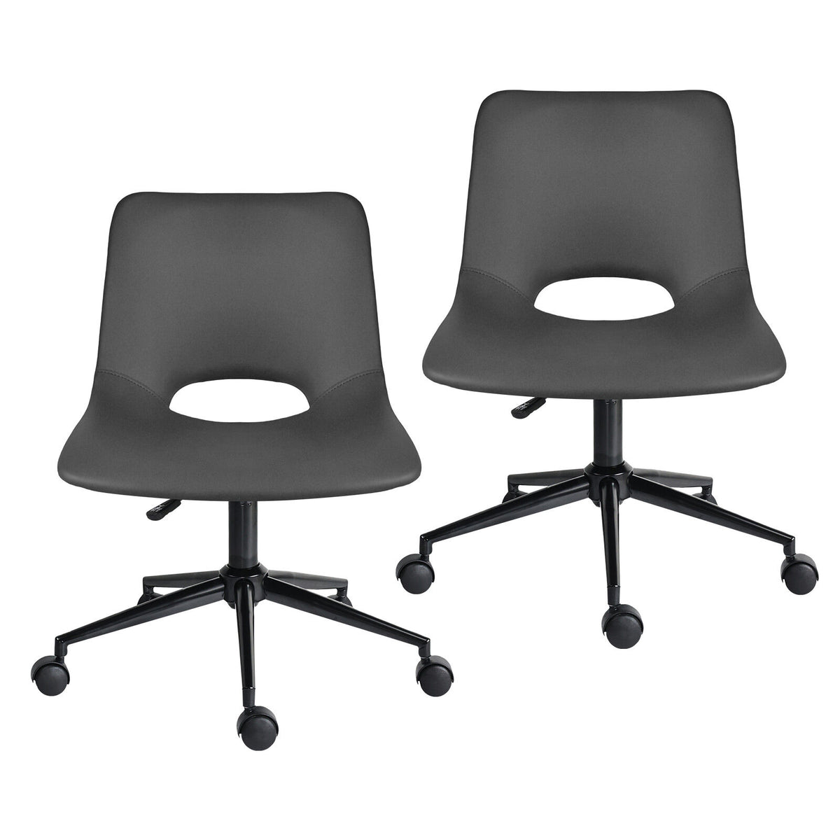 2 Set Office Desk Chair - PU Leather Home Swivel Chair Cut-Out Seat HALO GREY