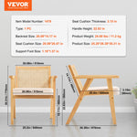 VEVOR Rattan Chair, Mid Century Modern Dining Chair with Armrest, Upholstered Chair with Rattan Back, Retro Rattan Dining Room Kitchen Chair for Living Room, Bedroom, Reading Room, and Office, Beige