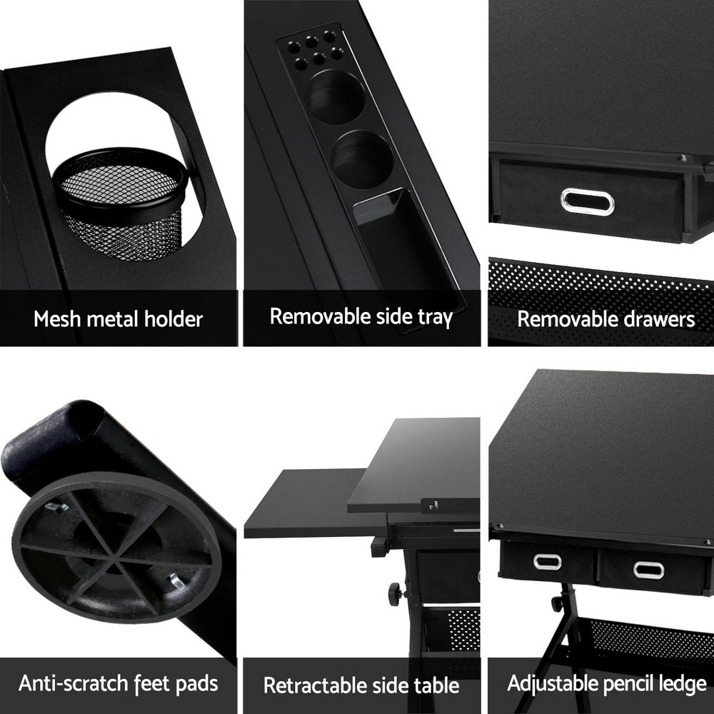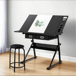 Artiss Drawing Desk Stool Set Drafting Table Adjustable Angle Tilt Drawers Black