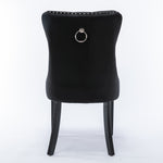 8x Velvet Dining Chairs Upholstered Tufted Kithcen Chair with Solid Wood Legs Stud Trim and Ring-Black