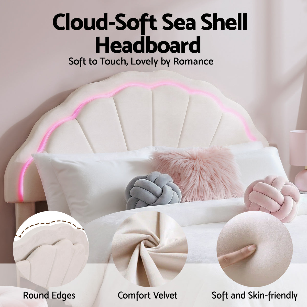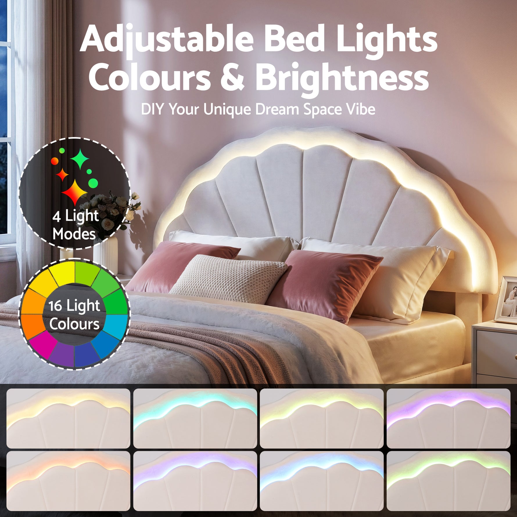 Built-in LED mood lighting on headboard