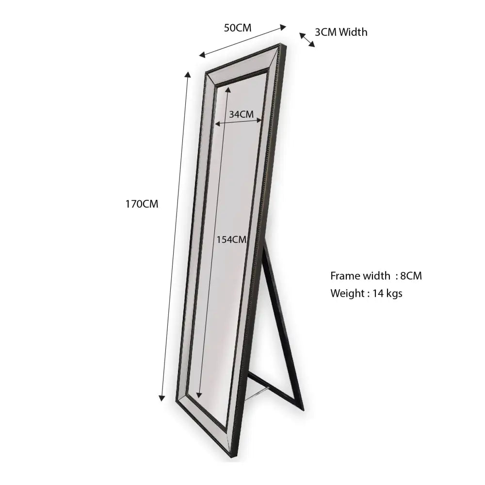 Black Beaded Framed Mirror - Free Standing 50cm x 170cm