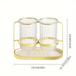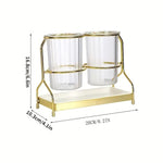 This luxury ironware chopstick holder set masterfully blends practicality and aesthetics with its minimalist yet refined design. The translucent, faceted glass cylinder, adorned with vertical stripes, allows a clear view of the internal golden utensils and wooden chopsticks, making them easy to accesstruly realizing the concept of "visible elegance, no need to hide." The entire piece features a sturdy golden metal frame and base, complemented by a stainless steel drip tray at the bottom to keep the surface dry and clean.