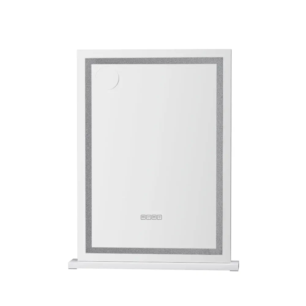 Your touch screen LED makeup mirror comes complete with everything you need to get started. The package includes the mirror itself, a USB cable for convenient charging, and a sturdy base for optimal stability during use. This comprehensive set ensures you can begin enjoying your enhanced makeup routine immediately upon receipt.