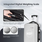 Integrated Digital Weighing Scale: Check your luggage weight on the go with the built-in digital scale in the handle. Powered by a CR2032 button battery (included).