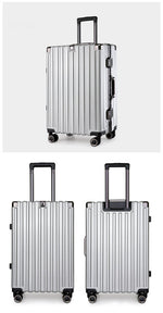 Aluminum Alloy Hard-Shell Suitcase designed for durability and style. This sleek 22-inch spinner luggage in elegant silver features an ultra-strong aluminum alloy frame, TSA-approved locks for added security, and 360-degree spinner wheels for smooth maneuverability. Ideal for frequent travelers who prioritize protection and luxury. Travel with confidence and sophistication!