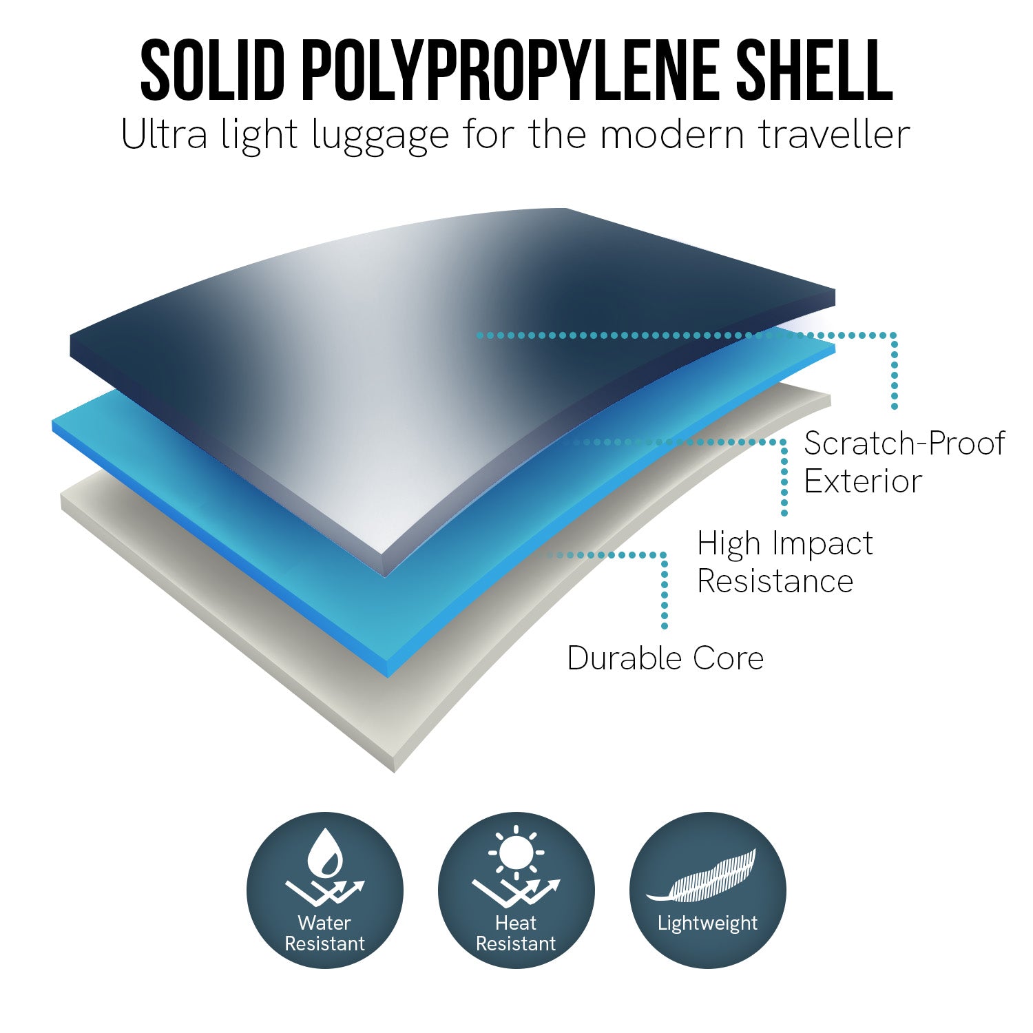 - Solid polypropylene shell - durable and lightweight