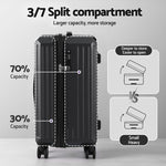 Wanderlite Trunk Luggage Set makes packing a dream, not a chore. With its innovative 3/7 split compartment, you'll conquer clutter, while phone holder and intimate side hook keep you more convenient on the go. Glide effortlessly with reinforced 360�� spinner wheels and rest easy knowing your gear is safe thanks to the TSA lock and durable ABS shell. Plus, a hidden wet compartment keeps everything fresh.