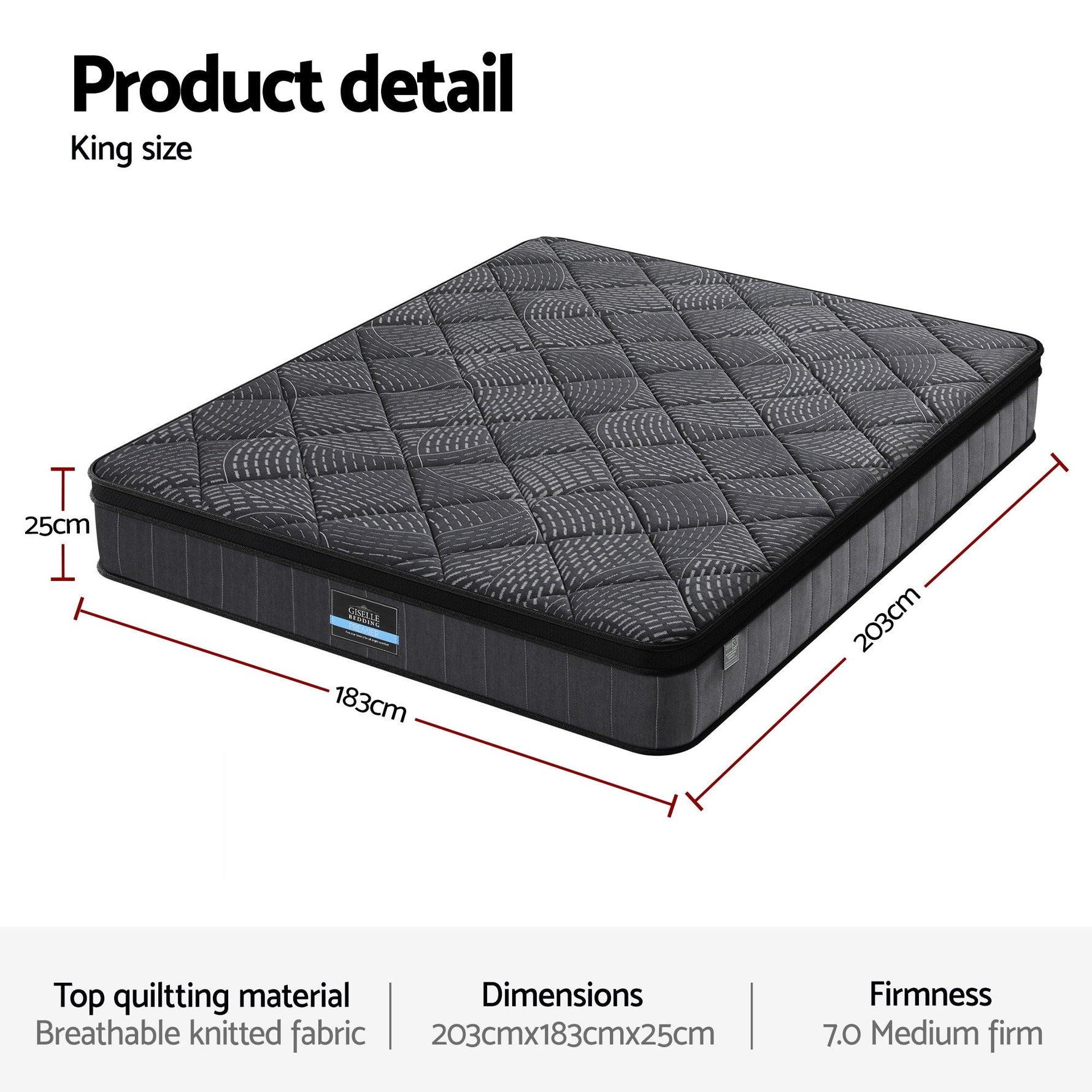 King: 183cm x 203cm x 25cm