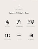 - 3-in-1 Smart Device: Functions as a Bluetooth Speaker, Night Light, and Digital Alarm Clock.