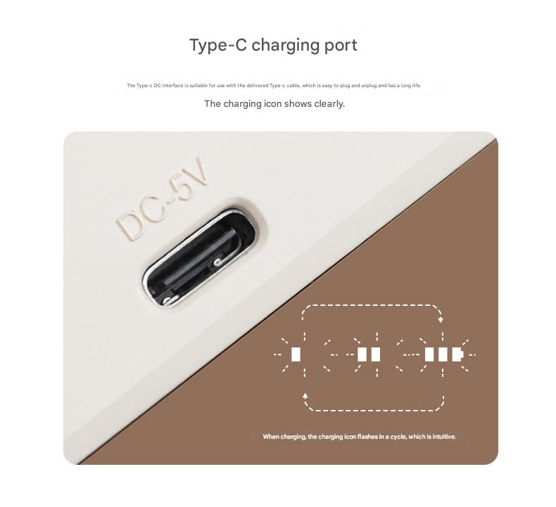 - Type-C Charging: Modern and convenient Type-C charging port (DC 5V input) with on-screen charging indicator.