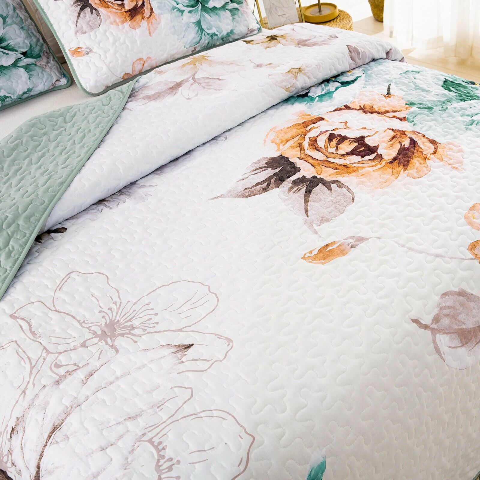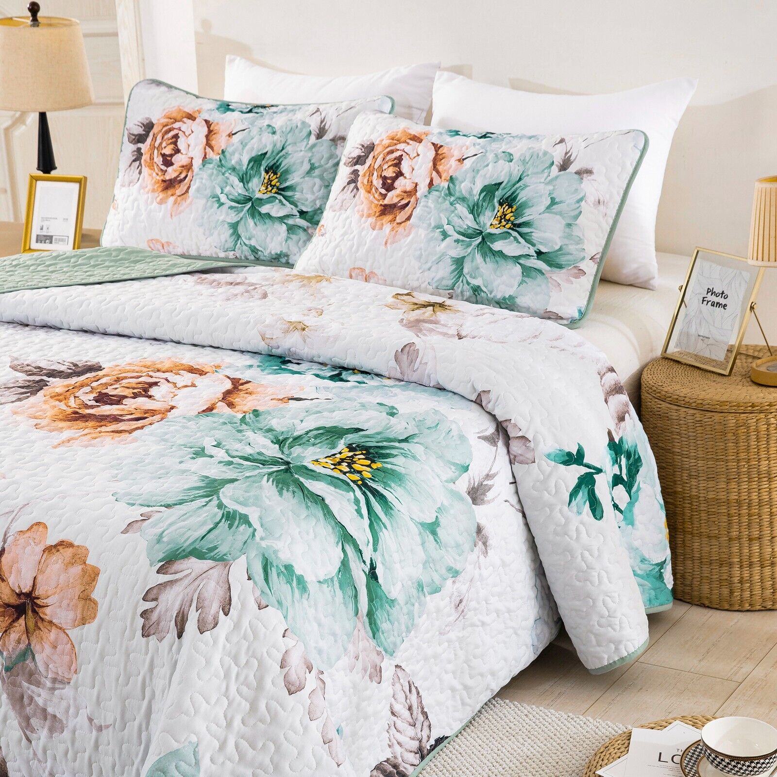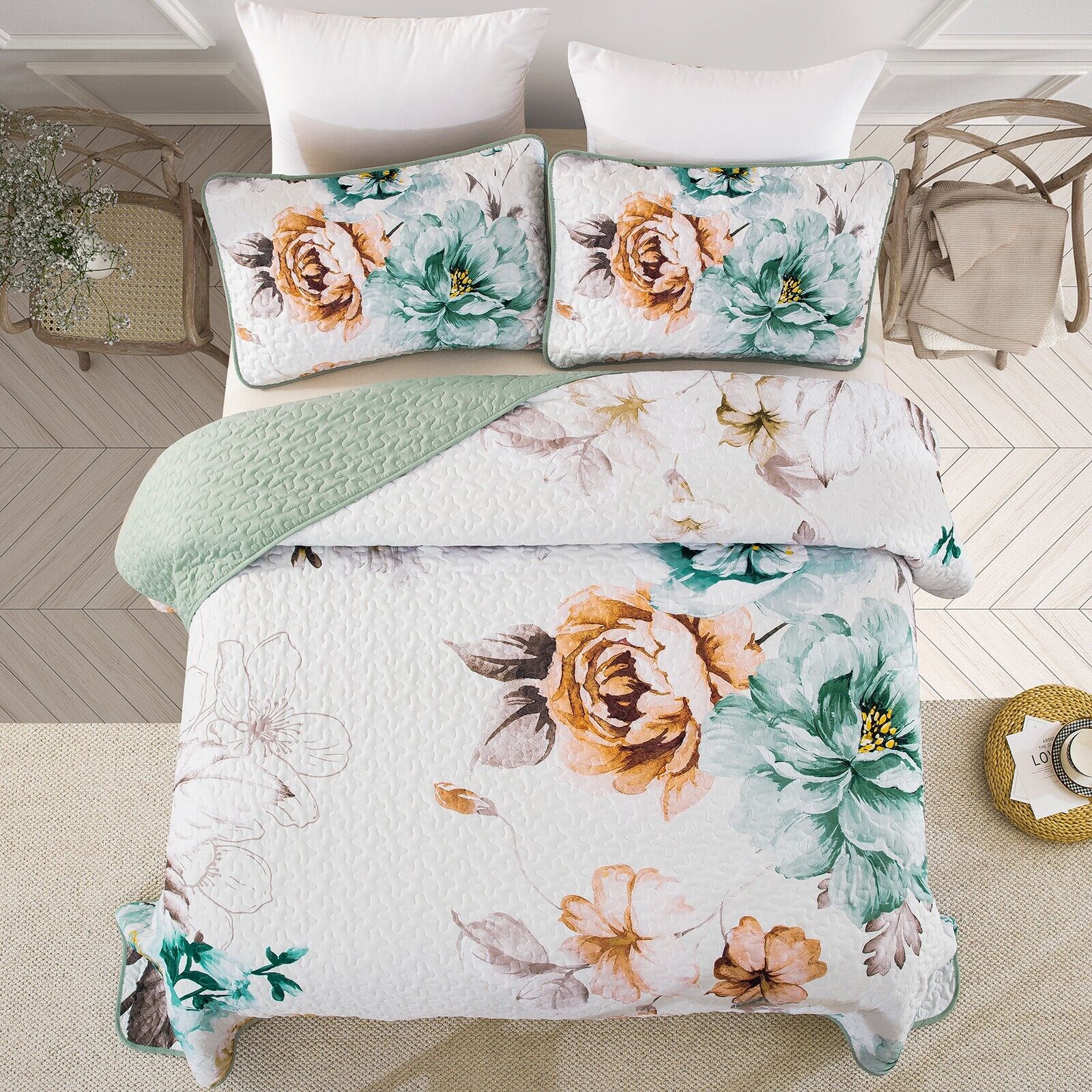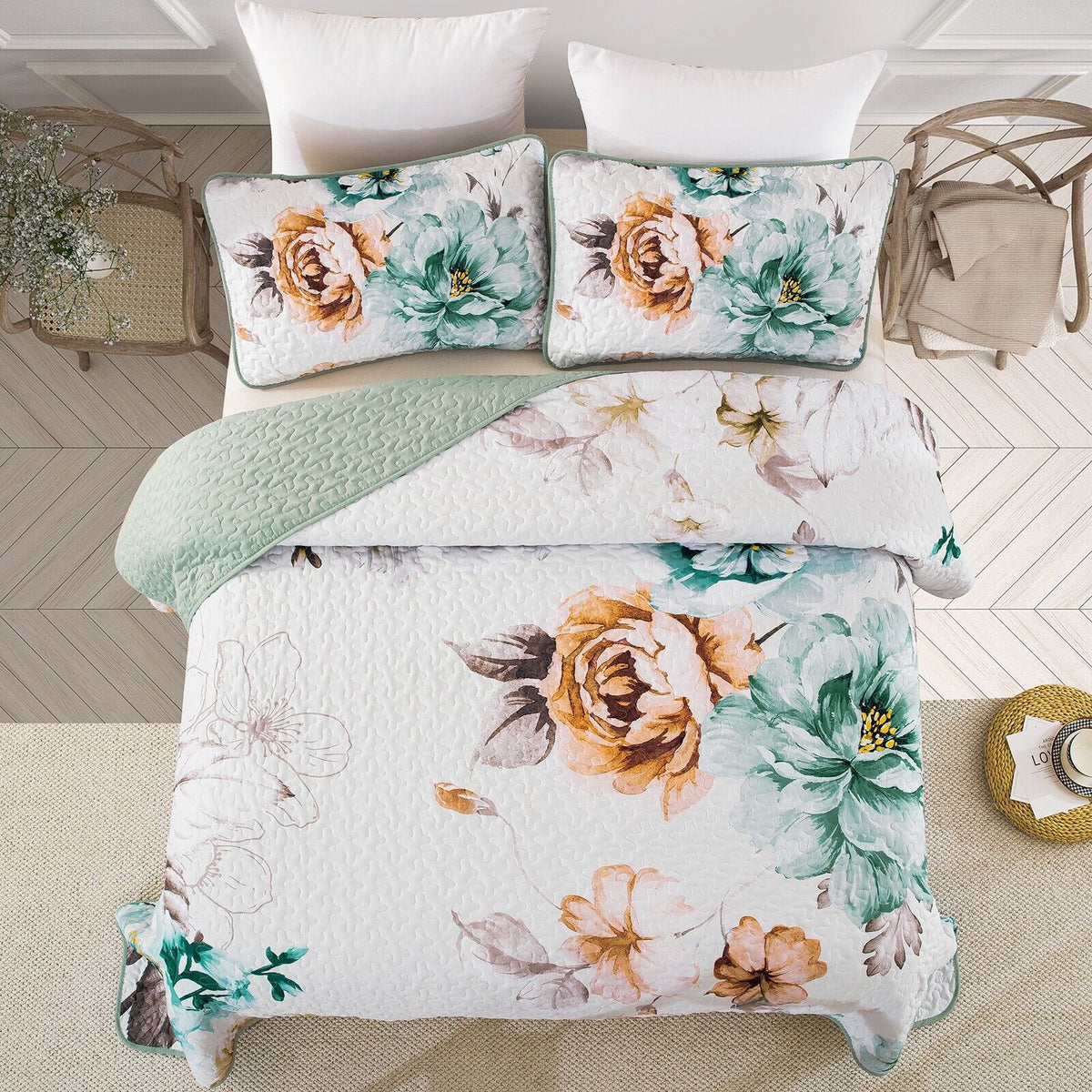 Rustic Farmhouse Chic floral Cozy 3 Pc Bedspread & Pillow Cover Set