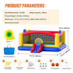 The large jumping area and slide cater to children and family entertainment needs, with an innovative basketball hoop and throwing game design for competitive fun and dunking. Six target balls and two PVC basketballs are included as gifts.