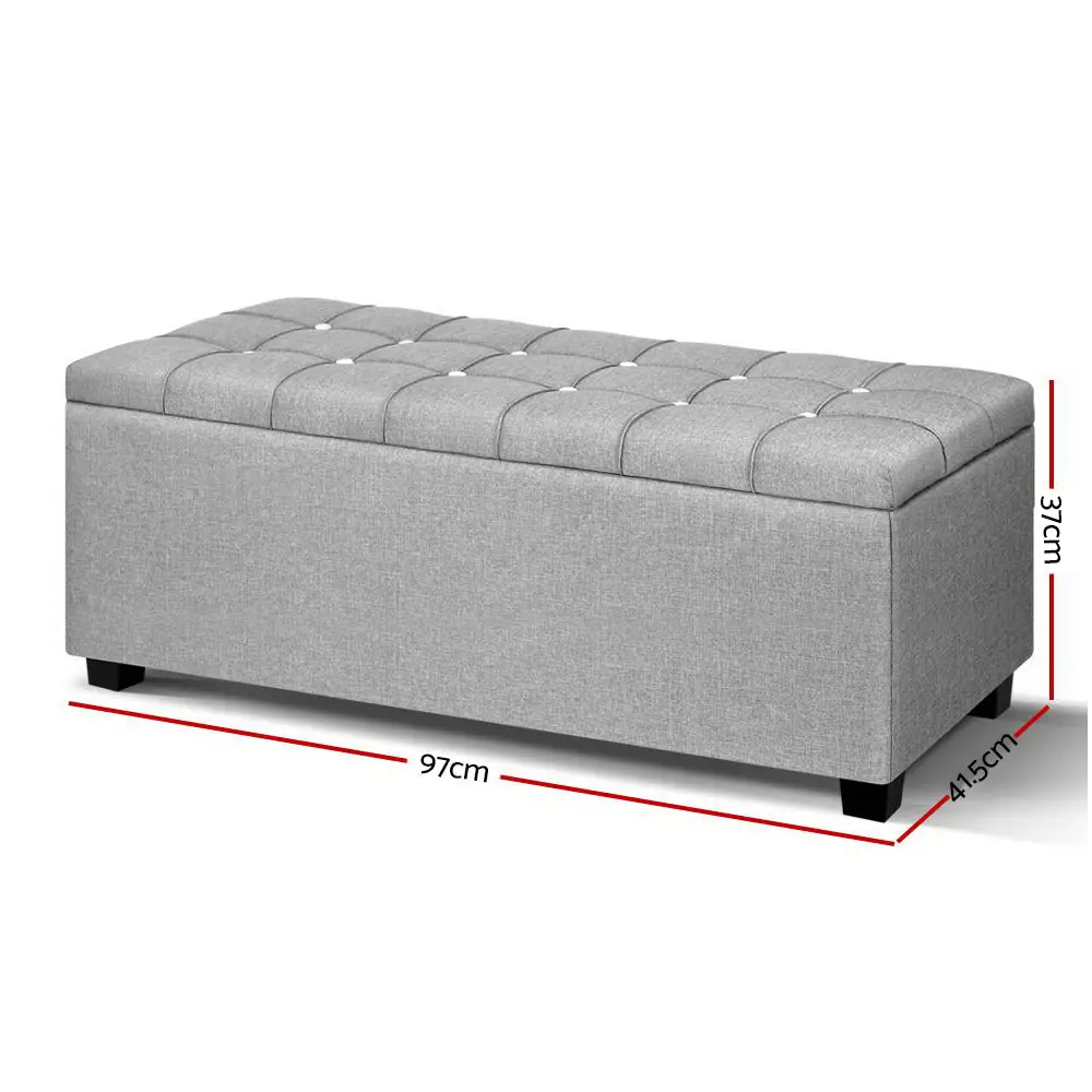 Durability is further enhanced through the use of heavy-duty connectors throughout the frame, guaranteeing reliable performance even with prolonged use. The bed frame's aesthetic appeal is elevated by its premium linen fabric upholstery, which encases high-density foam padding, creating a luxurious and inviting appearance.