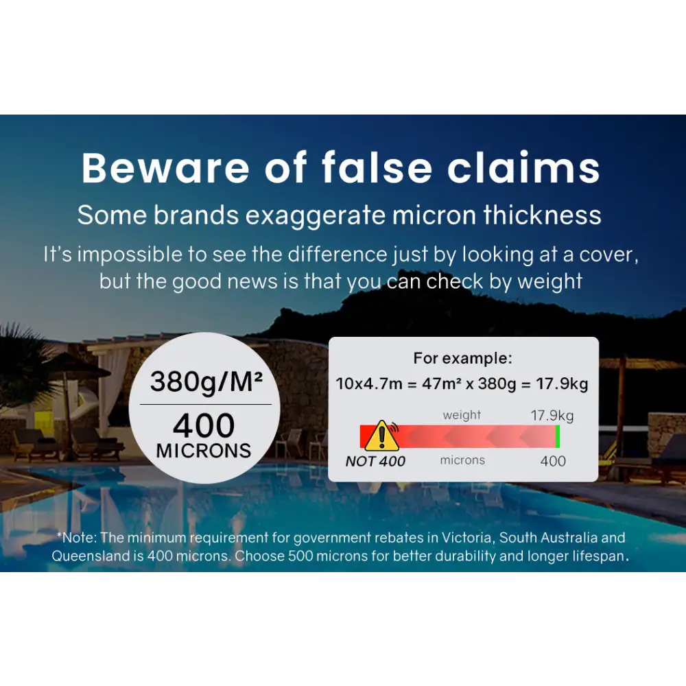 Our unique "Blue Top with Silver Underside" design is specifically engineered for cooler climate countries like Australia. This innovative design allows sun rays to penetrate the pool more easily and quickly, while also helping to retain heat in the pool for extended periods. By harnessing natural resources, you'll save money on chemicals and water, making pool maintenance more economical than ever.