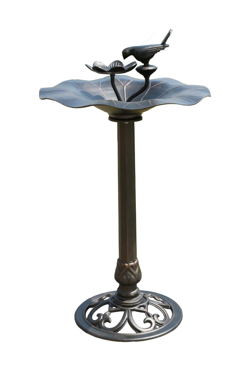 Decorative Bird Bath with Bird Ornament – Aluminum Top Cast Iron Base