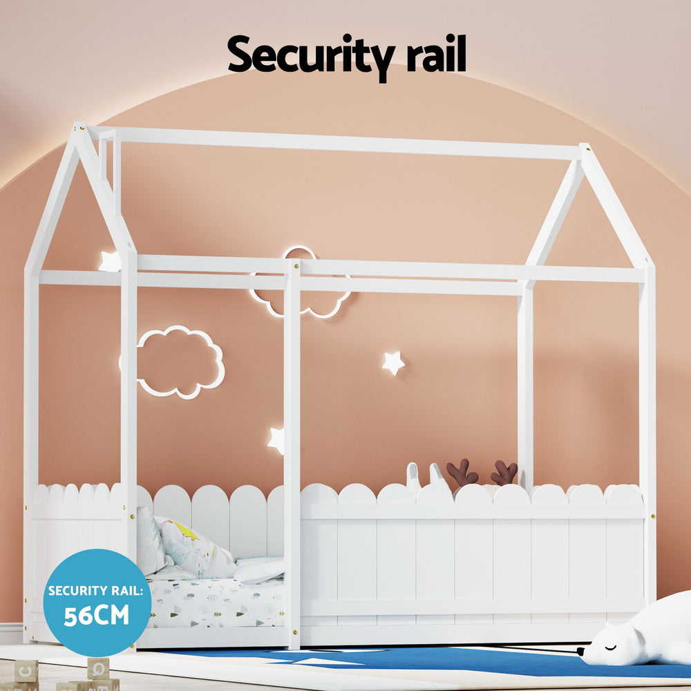Artiss Bed Frame Wooden Kids House Single Frame White KORI