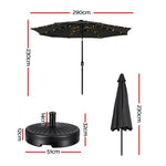 Instahut Outdoor Umbrella 2.9m Market Umbrella with Base String Light Black