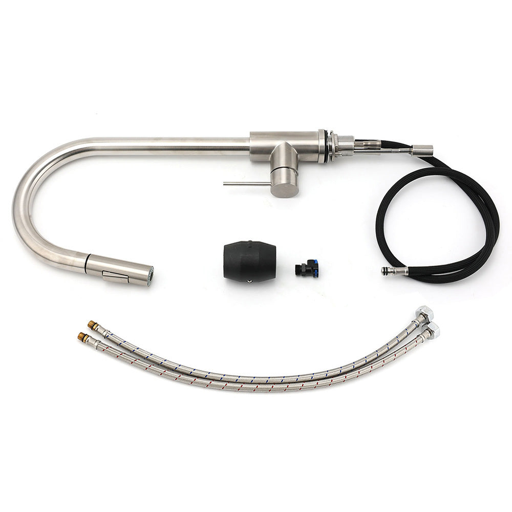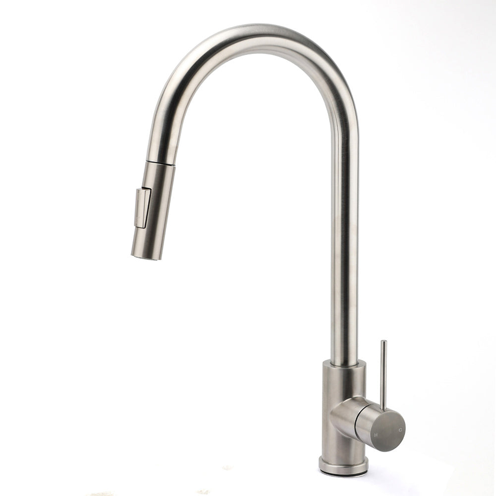 Brushed Nickel 2 Way Spray Kitchen Mixer Tap Pull Out Sink Laundry Swivel Faucet