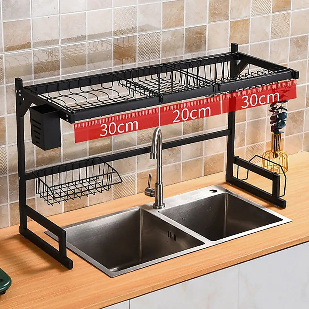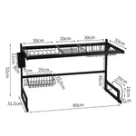 85cm Dish Drying Rack Drainer Over Sink Steel Cup Cutlery Organizer 2 Tier