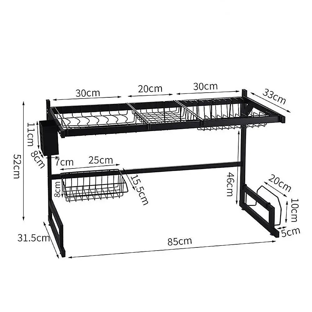Revolutionize your kitchen organization and maximize space efficiency with Randy & Travis Machinery's innovative over-sink dish drying rack. This versatile two-tier rack, crafted from durable water-resistant coated steel, offers a comprehensive solution for tidily storing crockery, cutlery, cleaning supplies, and even provides a dedicated compartment for fruit and vegetable storage.