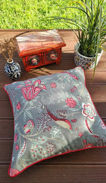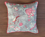 Brick Grey English Floral Fowl Chintz Cushion – Hand Screen Printed 100% Cotton 40x40cm Cover
