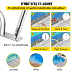 VEVOR Pool Rail 39x32 Pool Railing 304 Stainless Steel 250LBS Load Capacity Silver Rustproof Pool Handrail Humanized Swimming Pool Handrail with Blue Grip Cover & M8 Drill Bit & Self-Taping Screws